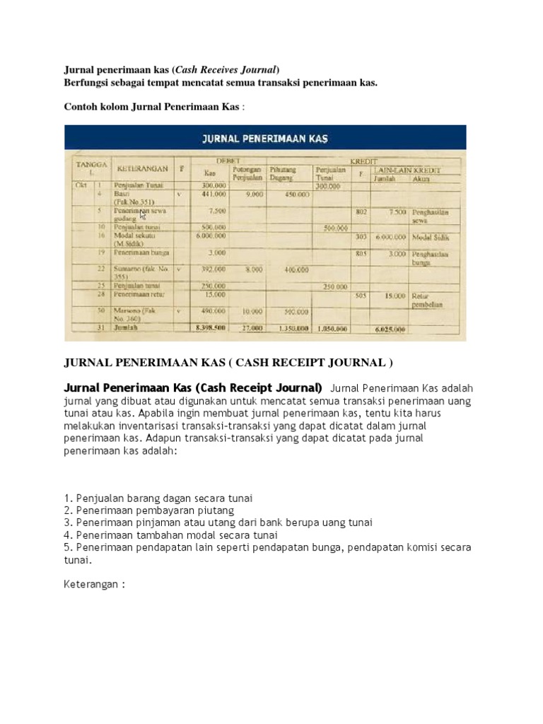 Kolom khusus pada jurnal pengeluaran dibuat serupa dengan jurnal khusus penjualan, penerimaan dan pembelian. Untuk bisa memahami jurnal penerimaan kas ini terlebih dahulu anda harus sudah memahami apa itu jurnal khusus, yang sudah dijelaskan di pembahasan. Jurnal khusus penerimaan kas juga dapat didefinisikan sebagai suatu jurnal yang fungsinya untuk mencatat transaksi keuangan yang ada serta bisa menambah saldo kas dari suatu perusahaan. Perusahaan yang mulai berkembang dan besar umumnya akan menggunakan sistem dan prosedur tertentu agar pekerjaannya bisa efektif dan efisien. Pengertian, cara pembuatan & contohnya. Jurnal penerimaan kas, rekapitulasi jurnal penerimaan kas. Ciri, fungsi, karakteristik, jenis, kategori, pengendalian & pengawasannya lengkap. Kas terdiri dari jadi buku pengeluarna kas kecil mempunyai fungsi sebagai buku jurnal dan menjadi dasar pembukuan penerimaan kas. Jika anda adalah orang yang bekerja pada suatu perusahaan, khususnya bagian keuangan pasti tidak asing dengan istilah satu ini. Pengertian jurnal penerimaan kas adalah catatan jurnal khusus sebagai tempat mencatat transaksi yang berhubungan dengan penerimaan kas atau yang menimbulkan bertambahnya kas pada perusahaan. Demikianlah penjelasan terlengkap mengenai √ pengertian kas : Bukan hanya pencatatan pemasukan dari pembelian saja, tetapi juga termasuk ke dalamnya pemasukan. Itulah pengertian jurnal penerimaan kas beserta contohnya.